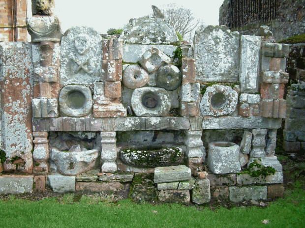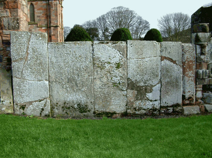 - A ‘wall’ of graveslabs at Coldingham Collegiate Church