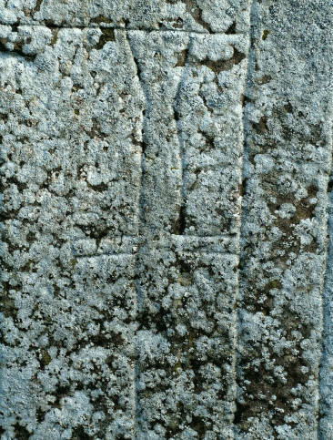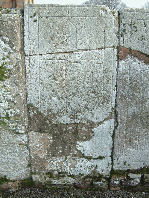 - Close-up of graveslab at Coldingham Parish Church