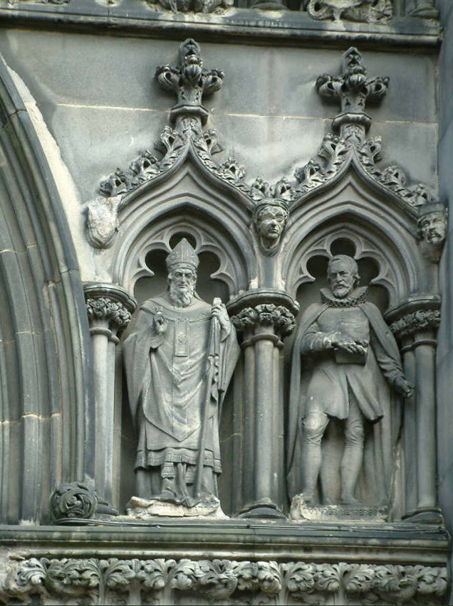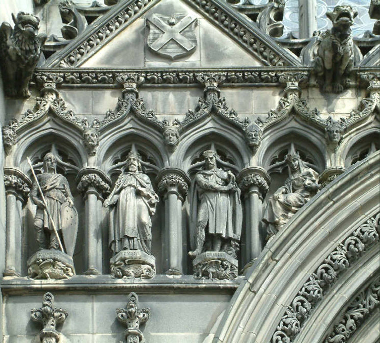 The site where the High Kirk of Edinburgh, St Giles, now stands has been a religious site since at least 854 and quite like likely much earlier. The earliest establishment was replaced by a Romanesque building erected by Alexander I (1107 – 1124. born 1078) about 1120. It is generally accepted that this would have been a single cell and was probably on the site of the present nave and the present crossing with its four massive pillars, which supports the Tower and Lantern, is likely to be the sole remains of that edifice. The Lantern was raised  about 1500. Until the Reformation (1560) the building was a Roman Catholic Cathedral and the last Mass was sung in March 1560. The building was shared, for a short time, by Roman Catholics and Protestants but the latter ‘purged the said kirk of idolatrie‘ and John Knox (c.1512 – 72) the great Protestant Reformer became Minister of the city. St Giles became the focus of his attempts to impose the Presbyterian for of Protestantism on Scotland.