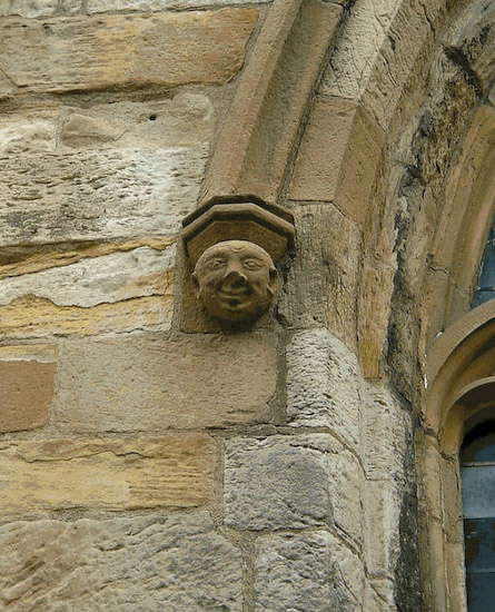 One of the most interesting aspects of the lore of Seton Collegiate Church is that it like, Rosslyn Collegiate Church, also has a legend of a murdered apprentice. The legend is virtually the same as that at Rosslyn except that it doe not involve a pillar. The story is that the Master Mason in charge of building the church had a major problem erecting the vaulted roof of the nave and went to another church to examine how the vaulted roof there had been erected. It is not known if the church he visited was local or, as in the case of the Rosslyn legend, was somewhere overseas. Given that there were a number of churches in the vicinity with vaulted roofs it seems likely that a long journey was not involved. In the absence of the Master Mason an apprentice had made the mathematical calculations and drawings showing how the vaulted roof could be built. The Master Mason, his pride being badly bruised (not to mention his ruined reputation of as ‘Master’), flew into a rage and hit the apprentice with a mallet killing him on the spot. Unlike Rosslyn there is no evidence that the remaining masons thought it worthwhile commemorating the Master Mason or the Apprentice’s mother with a stone carving but there is a carving of the murdered apprentice (image to follow). The reporter was informed by a local worthy, from Port Seton, that it was believed that the Seton Master Mason was none other than the disgraced Master Mason from Rosslyn Collegiate Church who had not in fact committed suicide after killing the Apprentice there but had moved to Seton in order to design and later build that church the construction of which began in 1470. If this is true, and it is impossible to substantiate, then the fate of